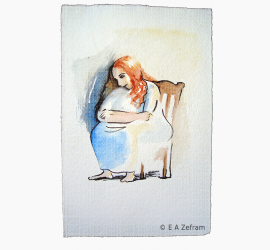 Woman in a chair, watercolour and watercolour pencil